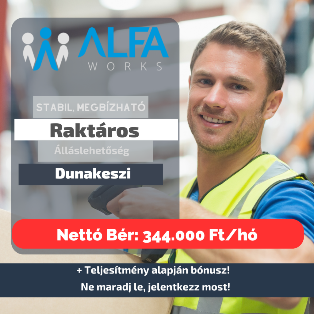 Biztos stabil munkahelyet keresel? Szeretnél tervezhető beosztással dolgozni? Raktáros munkatársakat keresünk DUNAKESZIRE!