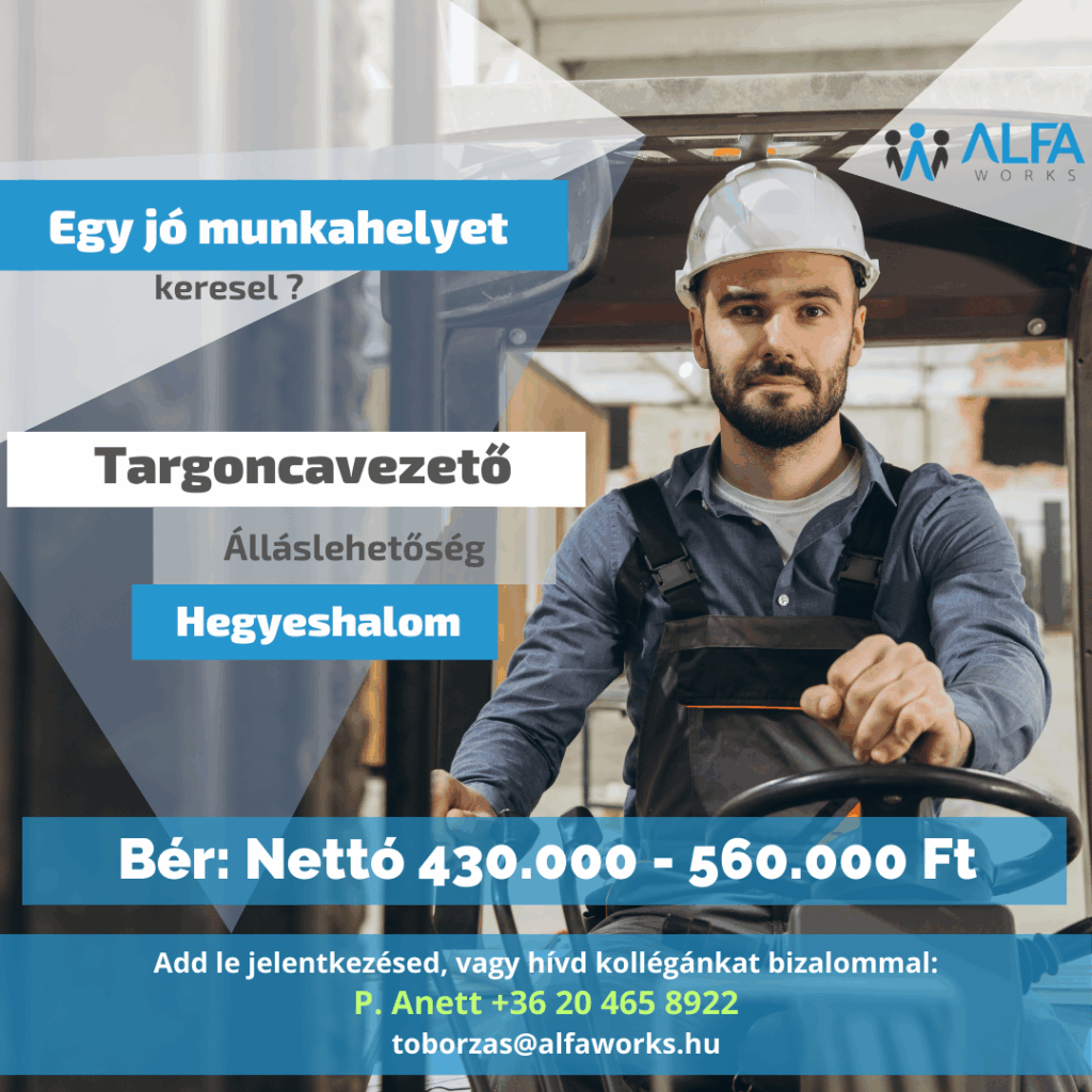 Targoncavezető pozícióba keresünk elhivatott munkatársakat. Vonzó feltételek, biztos háttér és megbecsülés vár – jelentkezz most, és lépj velünk egy biztosabb jövő felé!
