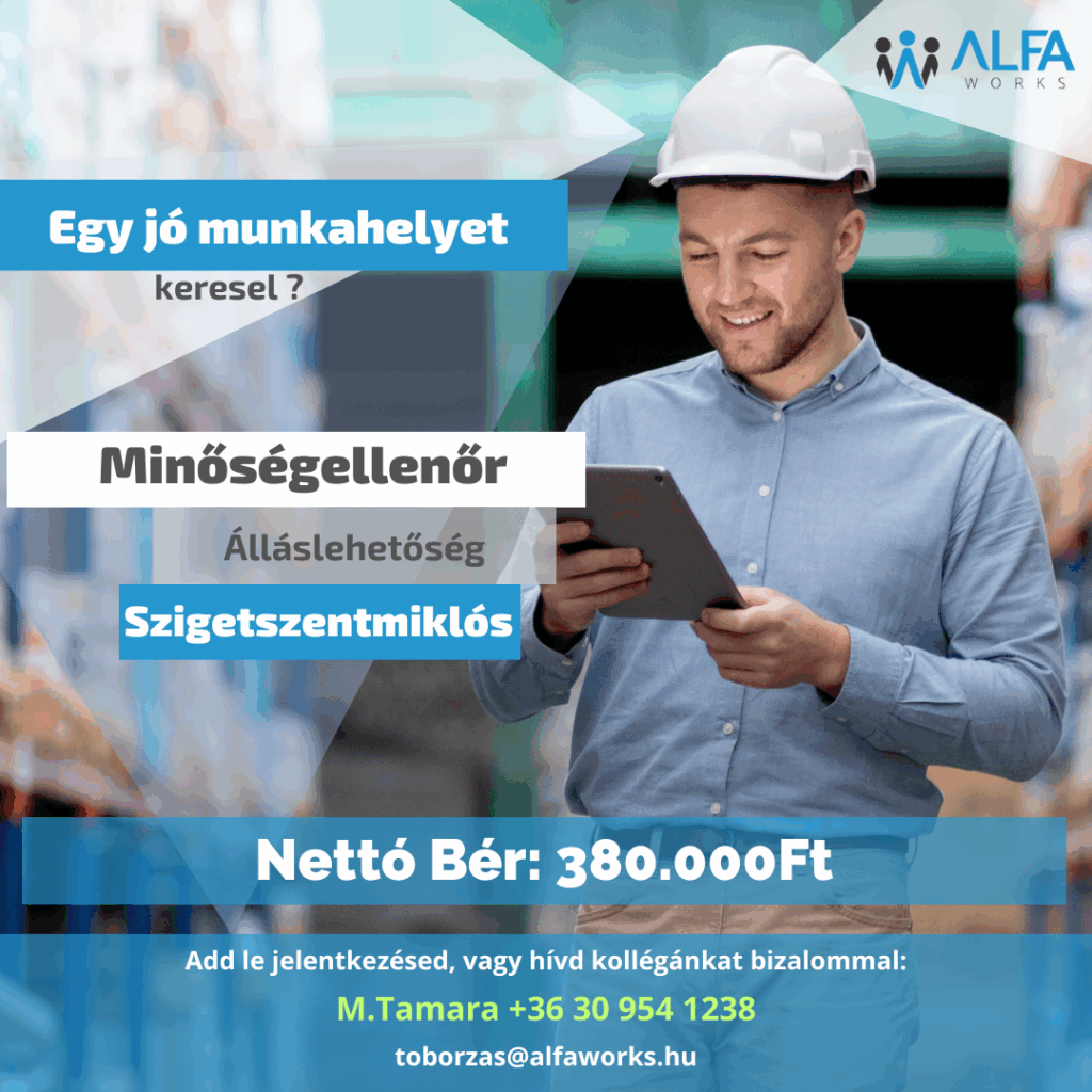 Dolgozz egy stabil hátterű, nemzetközi gyártóüzemben, ahol a minőség kulcsfontosságú! Minőségellenőrként korrekt bérezés, kulturált, ingyenes szállás és hosszú távú munkalehetőség vár rád – ha precíz vagy és szereted a rendet, nálunk biztos jövőre számíthatsz!