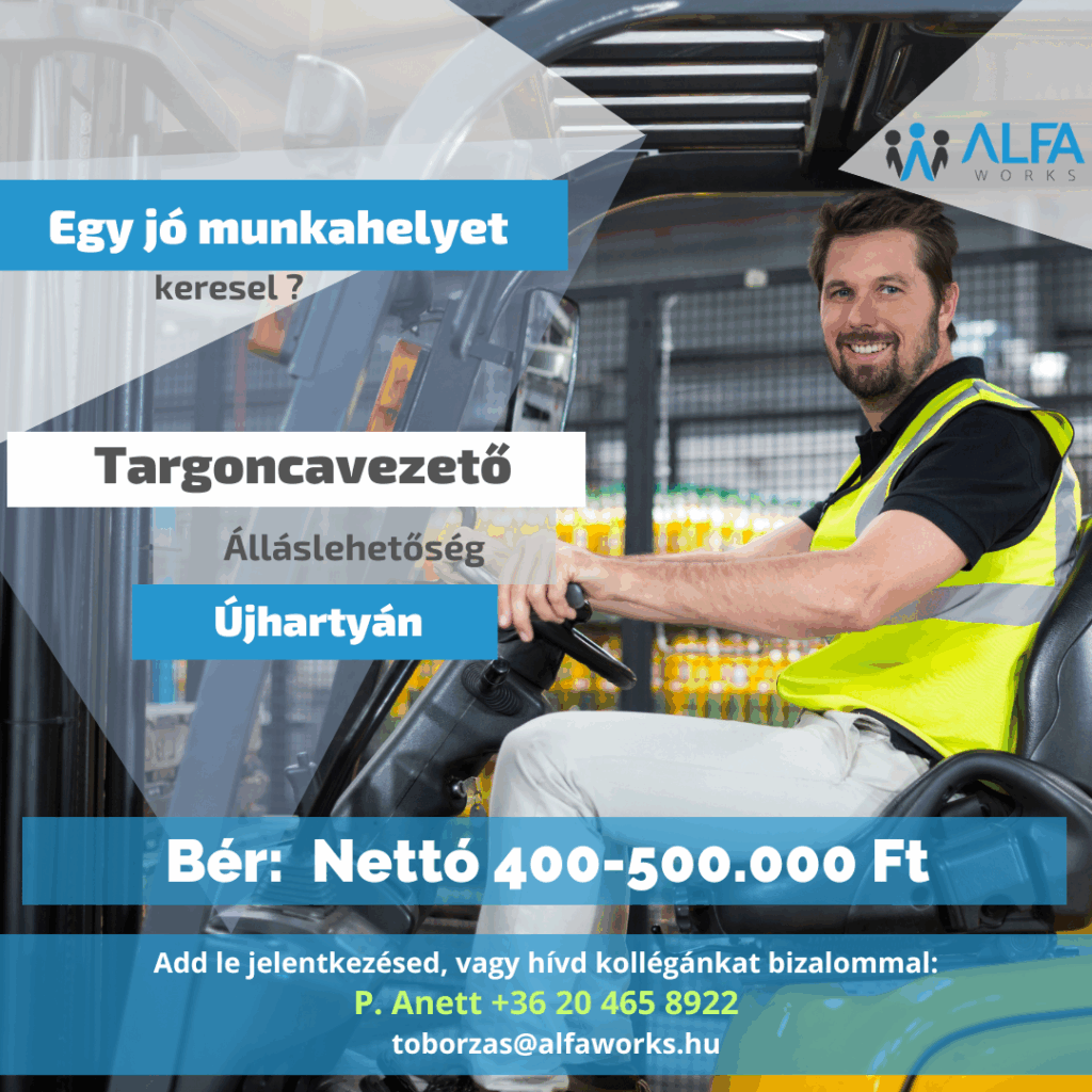 Targoncavezető pozícióba keresünk elhivatott munkatársakat. Vonzó feltételek, biztos háttér és megbecsülés vár – jelentkezz most, és lépj velünk egy biztosabb jövő felé!