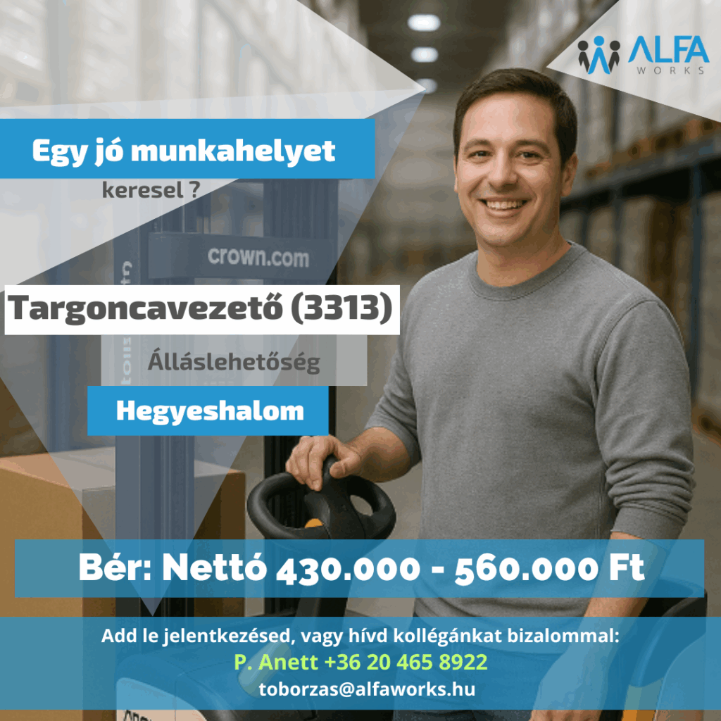 Targoncavezető pozícióba keresünk elhivatott munkatársakat. Vonzó feltételek, biztos háttér és megbecsülés vár – jelentkezz most, és lépj velünk egy biztosabb jövő felé!