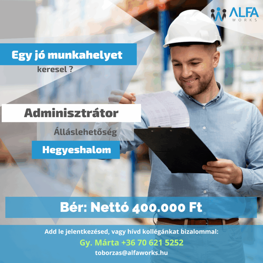 Adminisztrátor munkakörbe keresünk megbízható, figyelmes munkatársakat.