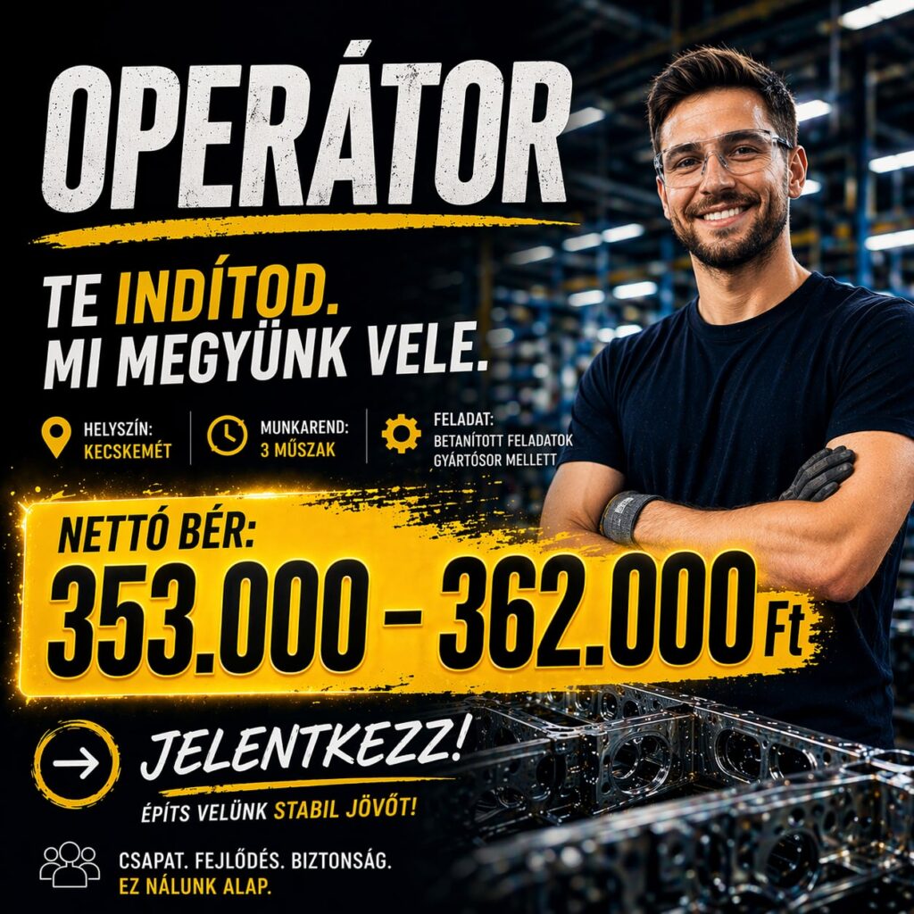 Operátor munkakörbe keresünk megbízható, figyelmes munkatársakat.