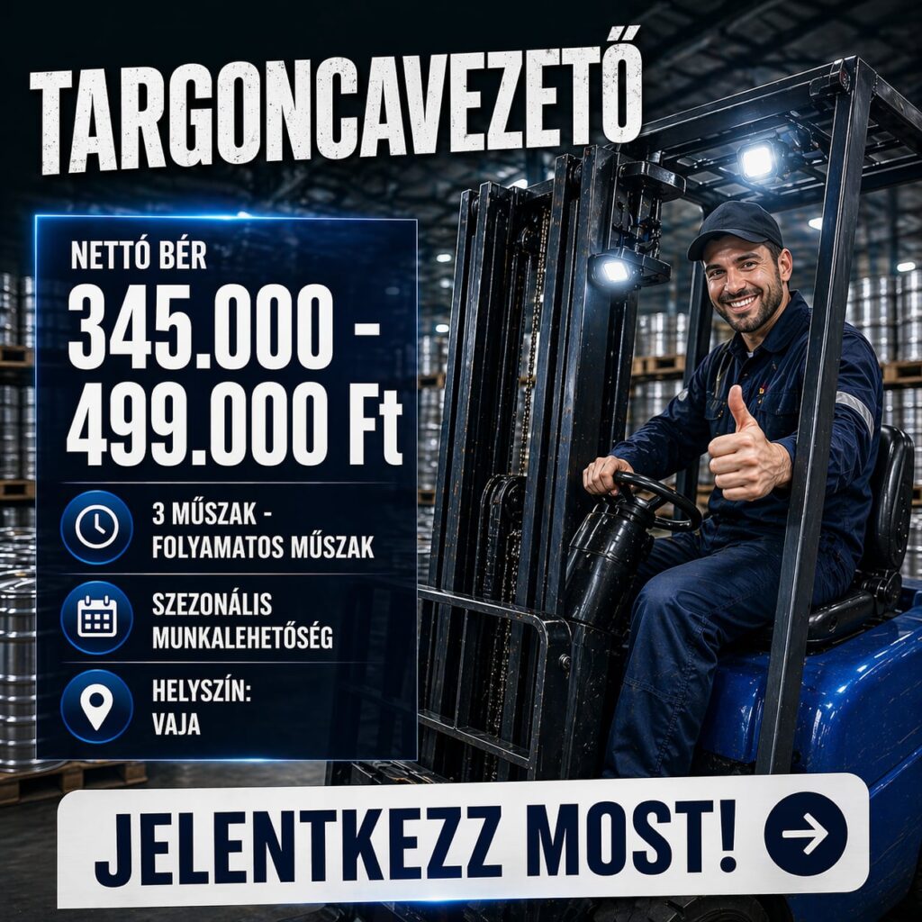 Magyarország egyik konzerveket gyártó vállalatához keresünk targoncavezető pozícióra munkatársakat Vaján! Ezt a lehetőséget kár lenne kihagynod! Rengeteg tapasztalatot lehet szerezni és karriert építeni egy ilyen biztos helyen. Stabil háttér, biztos munka, hosszútávon lehet tervezni. Mi is számítunk rád!